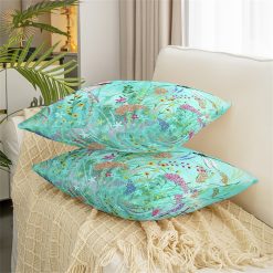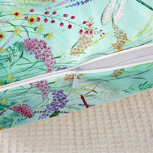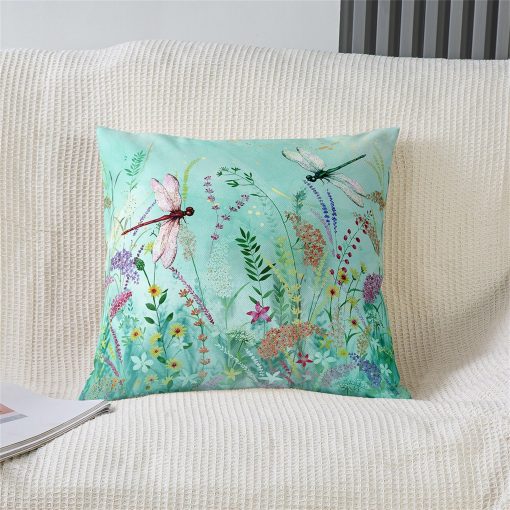 Garden Botanical Pillow Cover, Teal Green Watercolor Plant Spring Cushion Cover, Dragonfly Jungle Animal Print Pillow Cover, Handmade